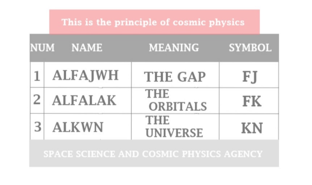 The physics of the universe has become one of the sciences that the student of science cannot learn because he does not know where he begins and where he ends, and it lacks many definitions and names. He also stands bewildered by the loss of equations, and the student of science refuses to study the physics of the universe for many reasons including that he does not find anything to rely on universe physic studies. It is not unambiguous and not based in precise physica foundations.